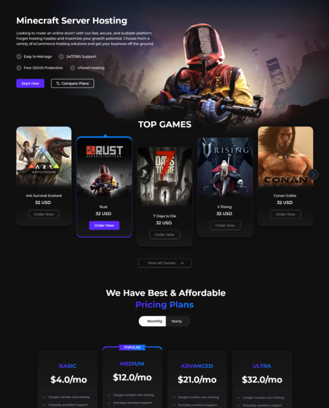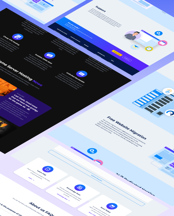 • Design: In Figma, we crafted a modern, high-tech visual language. We prioritized “Information Architecture” to ensure that 24/7 support, DDoS protection, and staging environments are always within reach.